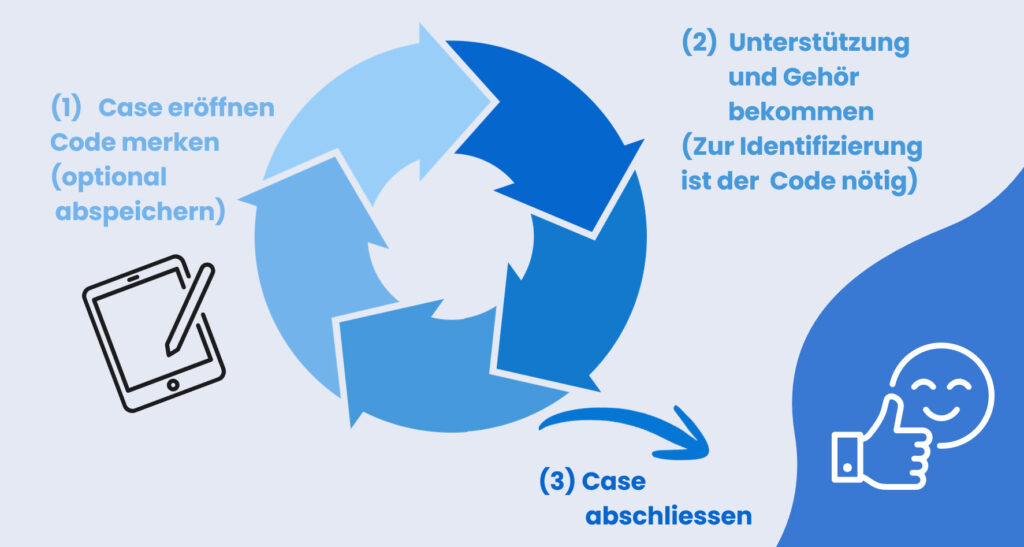 Sobald das Anliegen geklärt ist, wird der Case abgeschlossen. Der Prozess bleibt transparent, geschützt und selbstbestimmt.
